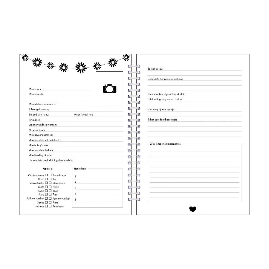Een vriendenboekje voor volwassenen. In dit vrolijke boekje kan jij al jou vrienden en vriendinnen laten schrijven. Met vragen als: Wat wilde je vroeger worden?  Ben je een ochtend of een avond mens? Wat staat er op jou bucketlist? Er is ook plaats voor een leuke pasfoto. Je kunt dit vriendenboekje door 50 vrienden laten invullen.